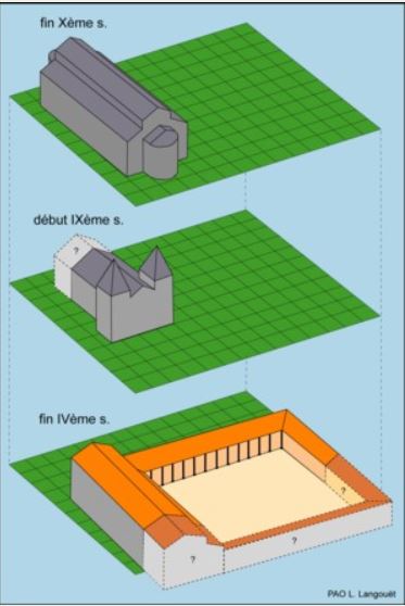 A la toute fin du VIIIème s., Alet fut promu siège d’évêché avec Helocar comme premier évêque (799-817). Au début du IXème s., à la suite de l’incendie de la première église, on construisit une nouvelle église. Malheureusement, à partir de 872, malgré ses remparts toujours debout, Alet eut à souffrir des incursions des Vikings (nord-man). Il semble qu’Alet fut même occupé par une troupe dirigée par Aquin (ou Incon) durant une trentaine d’années. Une chanson de geste évoque cette occupation dont on a retrouvé les traces dans le château de Solidor. Les normands furent chassés de Bretagne en 939 par Alain Barbetorte mais, à leur départ, la cathédrale d’Alet était détruite. Les listes épiscopales reprennent au milieu du Xème s avec Salvator (944-952). Une nouvelle cathédrale , plus grande et à deux absides, fut construite à la fin du Xème s.